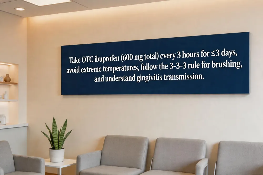 Pain relief strategies start with over‑the‑counter ibuprofen (600 mg total) taken every three hours for no more than three days, while avoiding extreme temperatures on the affected tooth. This short‑term approach eases mild to moderate discomfort until you can see your dentist.