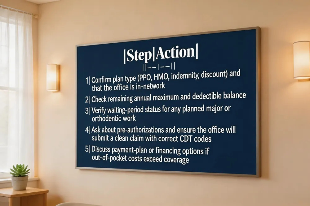 Before you schedule your next dental appointment, run through this quick, patient‑focused checklist to keep your insurance and finances on track: