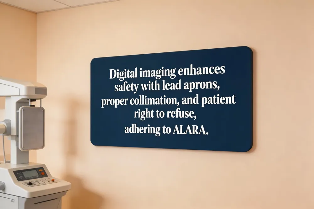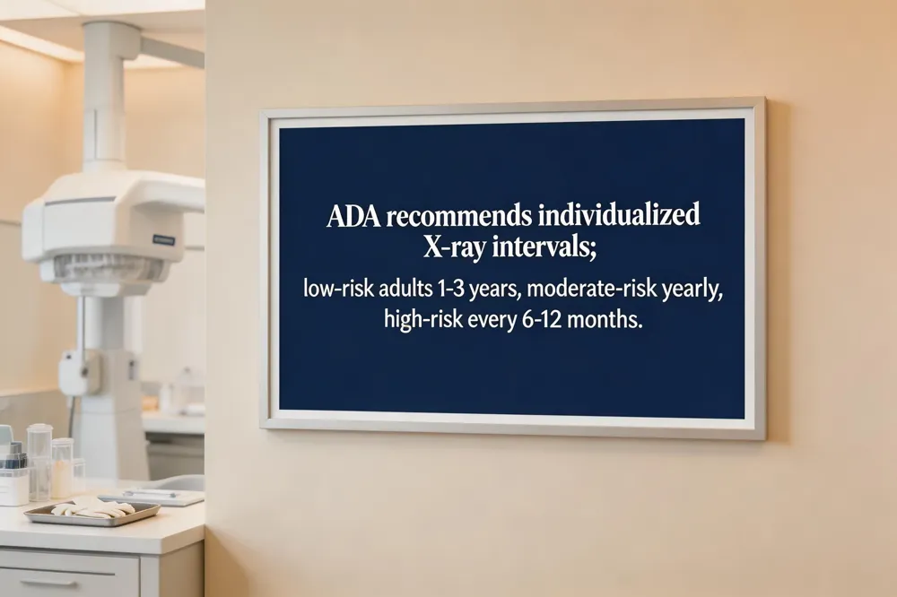 Digital dental X‑rays are now the norm in most U.S. offices because they deliver up to 90 % less radiation than film, provide instant images for same‑day diagnosis, and eliminate hazardous chemicals. The American Dental Association (ADA) follows the ALARA principle and recommends that X‑ray intervals be personalized: low‑risk adults may have bitewings every 1–3 years, moderate‑risk patients (history of cavities, gum disease, orthodontic work) about once a year, and high‑risk individuals every 6–12 months. Children are imaged only when clinically indicated, using child‑size exposure settings.