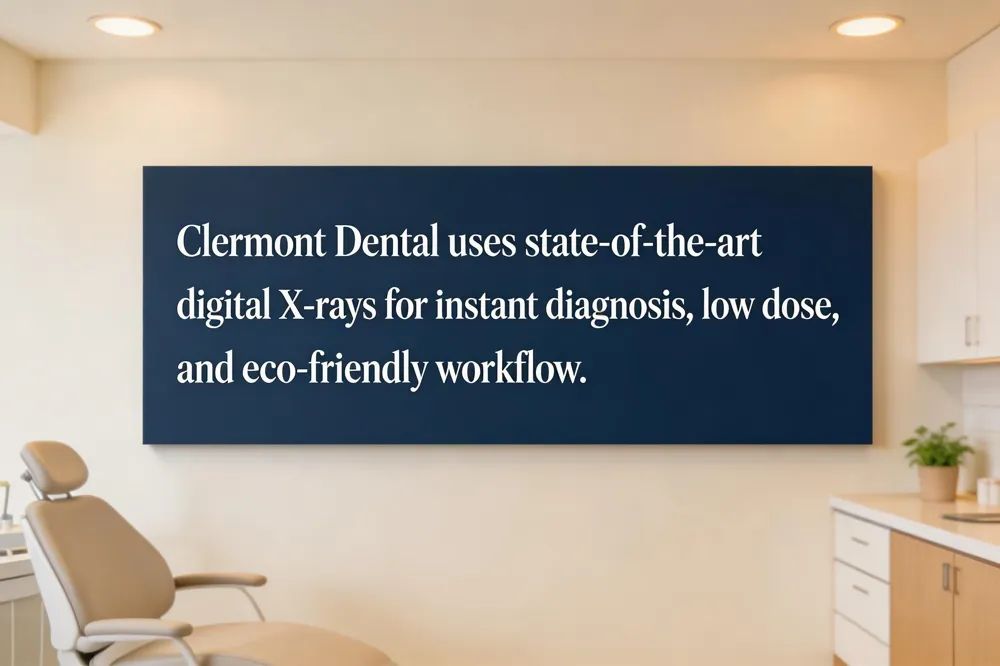 Clermont Dentist is conveniently located at 2615 S HWY 27, Suite 102 in Clermont, Florida, and can be reached at 352‑404‑5510. Our team, including Dr. Carrol Anton and Dr. Rohan Madhyani, routinely uses state‑of‑the‑art digital X‑ray technology for every intra‑oral and panoramic exam. Digital sensors capture high‑resolution images in seconds, delivering a dose that is 70‑90 % lower than traditional film, which keeps radiation exposure well within the ALARA guidelines and is especially reassuring for children, pregnant patients, and those with radiation‑sensitive conditions. Because the image appears instantly on a monitor, we can discuss findings with you during the same visit, streamline treatment planning, and avoid repeat exposures caused by blurry film. The electronic workflow eliminates hazardous chemicals, reduces physical storage needs, and supports easy sharing of records with specialists—helping us protect both your health and the environment while providing the highest standard of care.