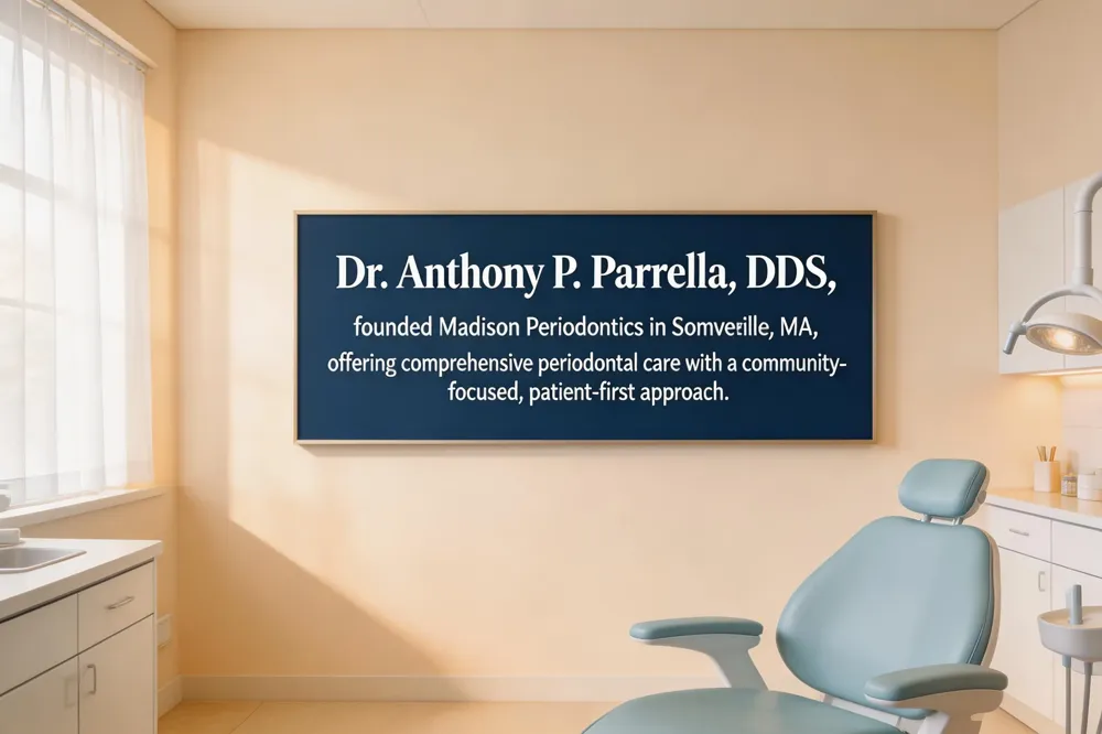 Dr. Anthony P. Parrella, DMD, is the founding dentist and owner of Madison Periodontics, a family‑run practice in Somerville, MA. After earning his DDS at New York University School of Dentistry and completing a periodontal residency at the University of Pennsylvania, he returned to the Boston area in 1995 and has been serving local families for over two decades. The practice offers a full suite of periodontal services – scaling and root planing, osseous surgery, connective‑tissue grafts, bone grafting, crown lengthening, and dental implants – all performed with a gentle, patient‑focused approach. Dr. Parrella’s office is known for its warm, community‑oriented atmosphere; staff members greet patients by name, and the practice participates in local health fairs and school‑based oral‑health programs. By combining expert care with a personal touch, the team helps Somerville residents maintain healthy gums and confident smiles.
