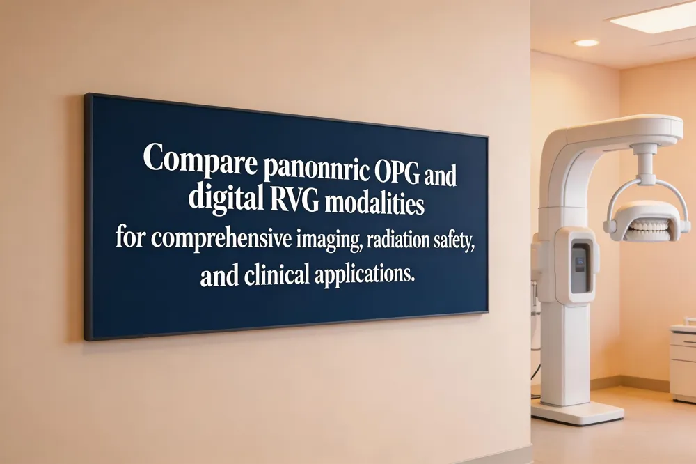 Orthopantomogram (OPG) and Radiovisiography (RVG) are complementary imaging tools that together give dentists a full picture of oral health. An OPG is a panoramic X‑ray that rotates around the head to capture a single, wide‑angle image of the entire mouth, showing all teeth, the upper and lower jaws, bone, and sinus structures. It is especially useful for evaluating impacted or missing teeth, assessing jawbone density, detecting fractures or lesions, and planning orthodontic, implant, or oral‑surgery procedures. RVG, on the other hand, refers to digital intra‑oral radiography where a small sensor is placed inside the mouth to record high‑resolution X‑ray images of individual teeth or specific sites. Compared with traditional film, RVG delivers instant images, adjustable contrast and brightness, and far lower radiation exposure—up to upto 90 % less than film‑based X‑rays. Clinically, RVG excels at detecting early caries, root‑canal morphology, and the fit of restorations, while OPG provides the broader skeletal context needed for treatment planning. Both modalities adhere to ALARA principles, but RVG’s sensor technology typically results in the lowest dose for localized examinations, whereas an OPG’s dose is higher but still reduced compared with older panoramic film techniques, making them safe for routine use in families and pediatric patients.