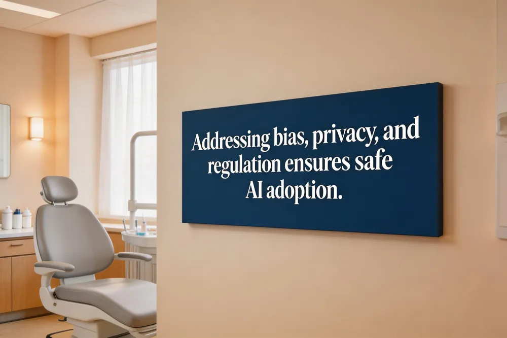 Regulatory landscape – The FDA has cleared several AI dental tools (e.g., Overjet, VideaHealth) for decision‑support, but manufacturers must demonstrate safety, efficacy, and post‑market monitoring. Ongoing compliance with evolving standards ensures clinicians can trust the technology.