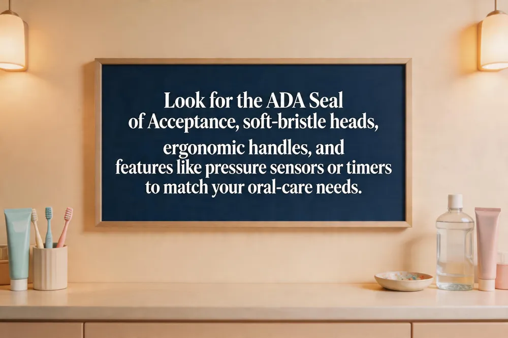 The American Dental Association (ADA) Seal of Acceptance guarantees that a toothbrush meets strict safety and efficacy standards; popular ADA‑approved electric models include the Oral‑B iO Series 5 and Series 2, while manual favorites are the Oral‑B Vivid Whitening and Colgate Extra Clean Soft‑Bristle brushes. Consumer Reports’ 2026 review highlights the Philips Sonicare DiamondClean Smart 9300 for overall cleaning power, the Oral‑B iO Series 2 for pressure‑sensor protection of sensitive gums, and the budget‑friendly AquaSonic Black Series SCTB. The Colgate Keep Deep Clean manual brush adds a lightweight aluminum handle, Floss‑Tip bristles that reach four times deeper, and a replaceable head that cuts plastic waste by 80 %. For a brighter smile, the Colgate Max White toothbrush uses polishing‑star bristles that lift surface stains while remaining soft on gums. Dentists consistently recommend manual brushes with soft or extra‑soft bristles, a small ergonomic head, and regular replacement every three months—top clinician picks include the Radius Source vegetable‑nylon brush, Oral‑B Cross Action, and Colgate Extra Clean. Pair any of these brushes with gentle 45‑degree‑angle strokes, a two‑minute timer, and fluoride toothpaste for optimal oral health.