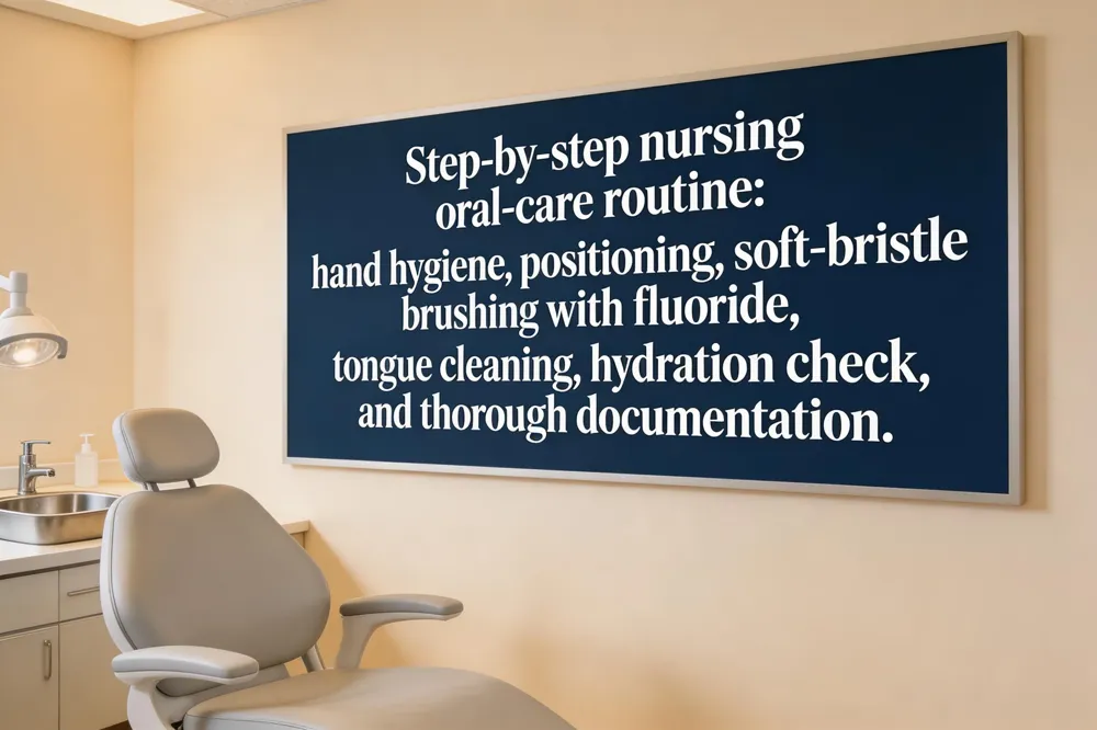A consistent oral‑care routine is a cornerstone of preventive dentistry and essential for patients in nursing settings. The Oral Care Nursing Procedure PDF provides a step‑by‑step protocol that begins with reviewing the patient’s chart for activity limitations, gathering supplies (soft‑bristle toothbrush, fluoride toothpaste, gloves, basin, water), and performing hand hygiene and PPE donning. The patient is positioned safely—often upright at a 45° angle—while the caregiver brushes all teeth using gentle circular motions, cleans the tongue, and inspects gums for inflammation, bleeding, or infection. After rinsing, the mouth is assessed for hydration and tissue integrity, and equipment is properly cleaned or disposed of. The documented steps of oral care in nursing are: 1) gather supplies and sanitize hands; 2) introduce yourself, ensure privacy, and position the resident; 3) brush teeth, gums, and tongue with a soft‑bristle brush and fluoride toothpaste; 4) assist with rinsing, clean the basin, and dispose of waste; 5) perform post‑procedure hand hygiene, check comfort, and document findings. This compassionate, systematic approach supports oral health, reduces infection risk, and aligns with broader preventive dental recommendations.