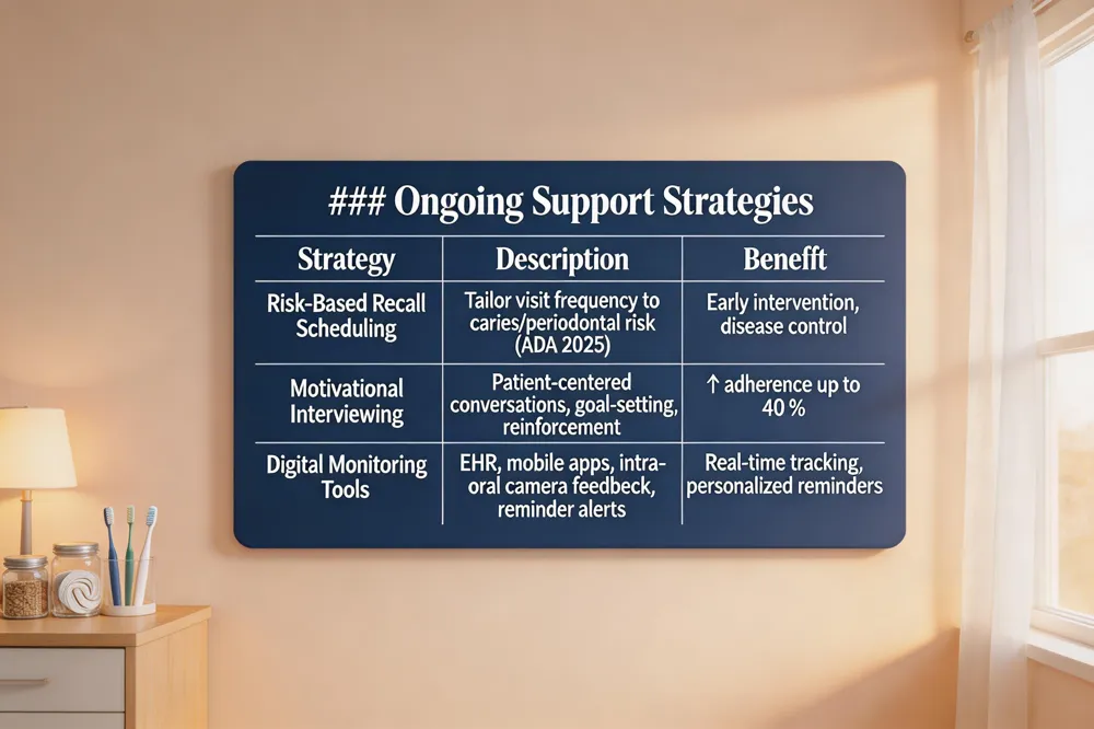 Motivational interviewing and behavioral coaching – Hygienists use empathetic, patient‑centered conversations to uncover barriers to daily brushing, flossing, or diet changes. By setting realistic, incremental goals and reinforcing successes, patients are up to 40 % more likely to adhere to home‑care recommendations. Techniques such as goal‑setting, positive reinforcement, and self‑monitoring empower patients to take ownership of their oral health.