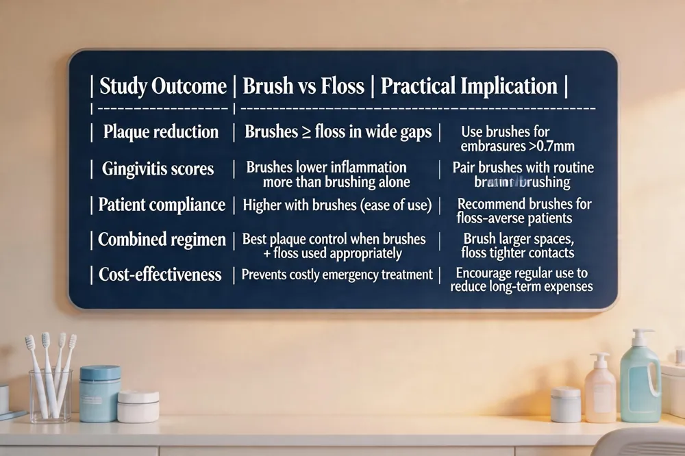 | Study Outcome | Brush vs Floss | Practical Implication |