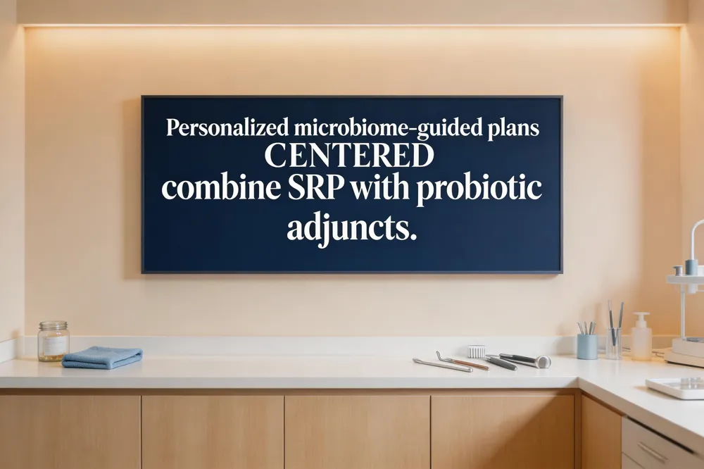 Adjunctive use with scaling and root planing (SRP) Probiotics are never a stand‑alone therapy. After SRP removes the bulk of sub‑gingival biofilm, we advise patients to begin a daily lozenge or gum regimen (≥10⁸ CFU, 4–12 weeks) to repopulate the pocket with beneficial bacteria. Clinical studies show this combination modestly reduces probing depth and bleeding on probing compared with SRP alone, especially in deep pockets.