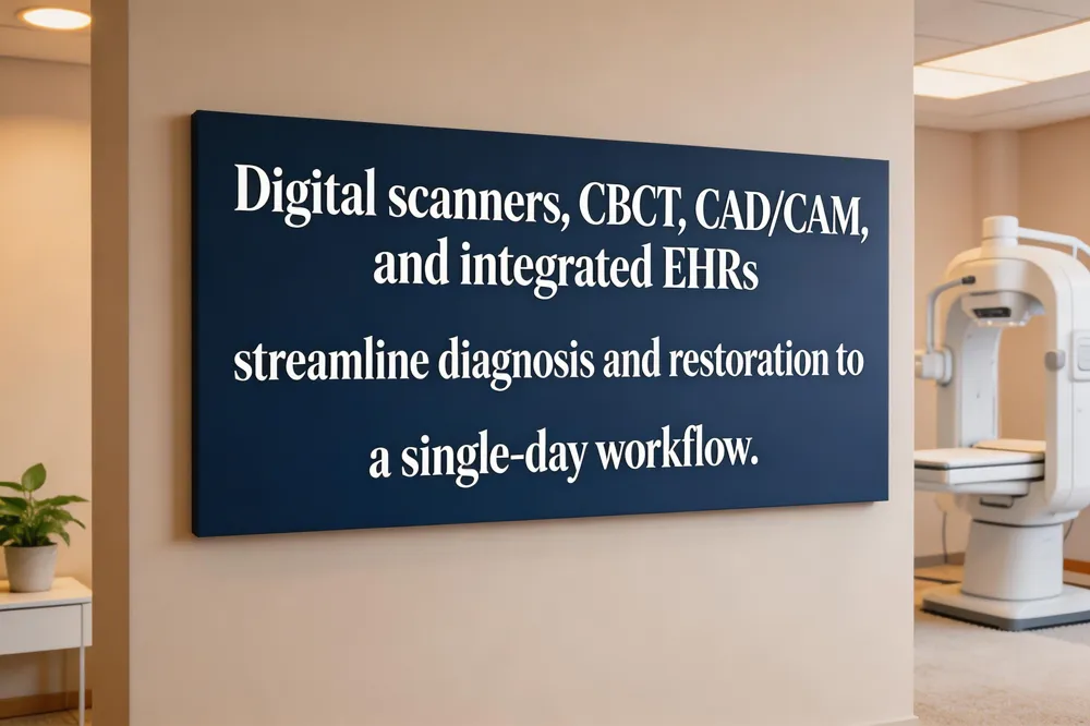 CAD/CAM technology then uses these datasets to design and mill temporary crowns, veneers, or orthodontic appliances on‑site, often completing the restoration in one visit. Electronic health records (EHR) integrate all imaging, notes, and insurance information, while tele‑dentistry platforms enable patients to submit high‑resolution intra‑oral photos and receive a preliminary assessment within minutes. The seamless flow of data from scanner to EHR to the dentist’s workstation cuts traditional planning cycles—from several days of lab work and manual charting—to a streamlined, 24‑hour turnaround, reducing anxiety, preventing complications, and accelerating the start of definitive care.