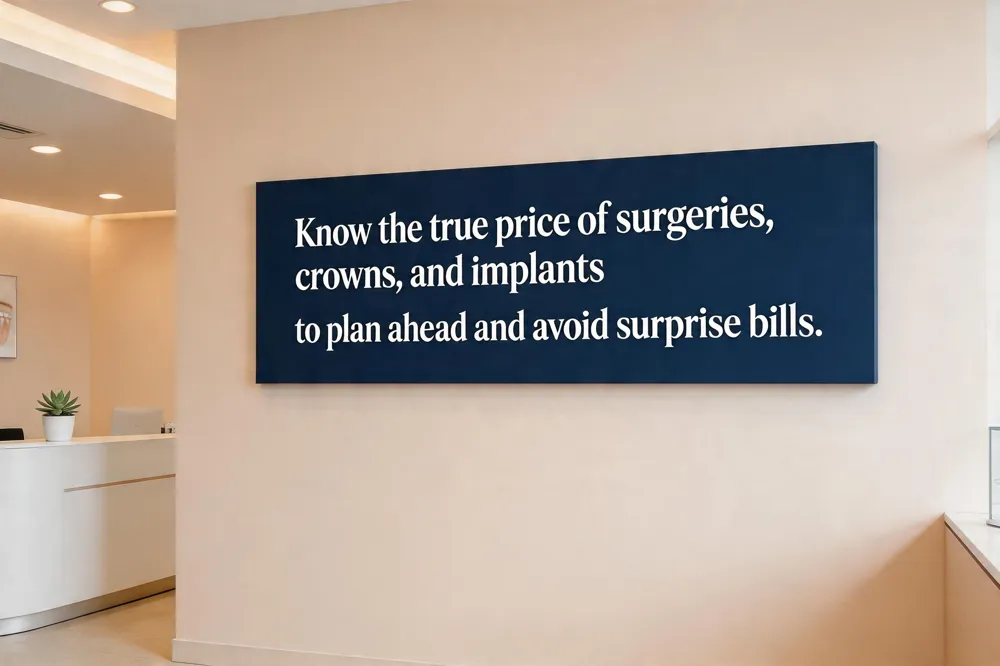 Dental procedures cost list – A typical U.S. price guide shows: exam + cleaning $50‑$350; fillings $50‑$250; crowns $500‑$2,000; root canals $300‑$1,800; extractions $75‑$300; deep cleanings (scaling and root planing) $150‑$300 per quadrant; implants $1,500‑$4,000 per tooth.
