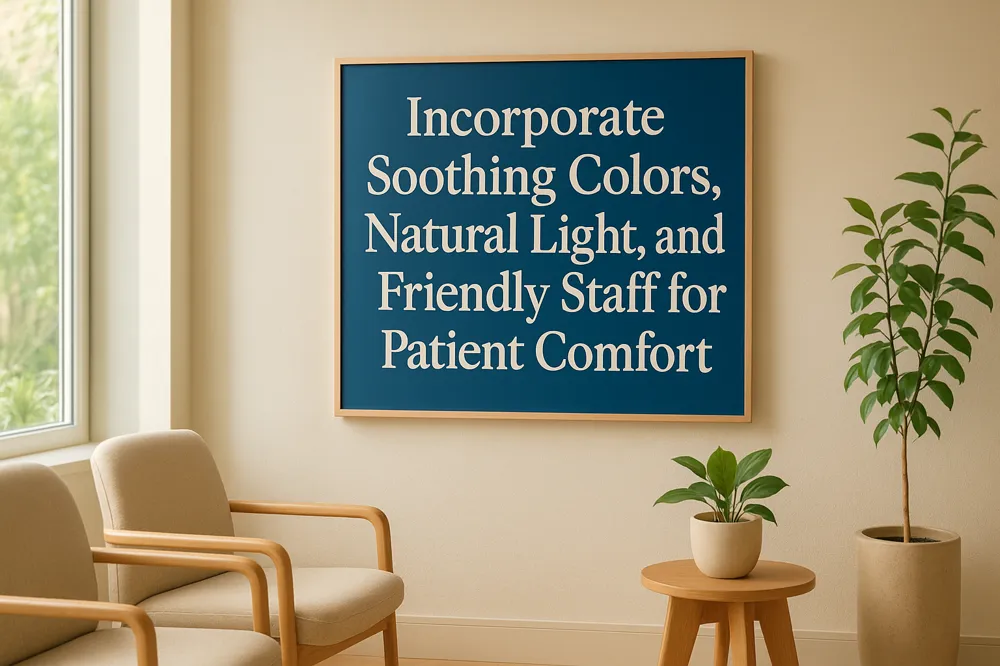 Elements of a calming, hygienic, and relaxing dental office atmosphere