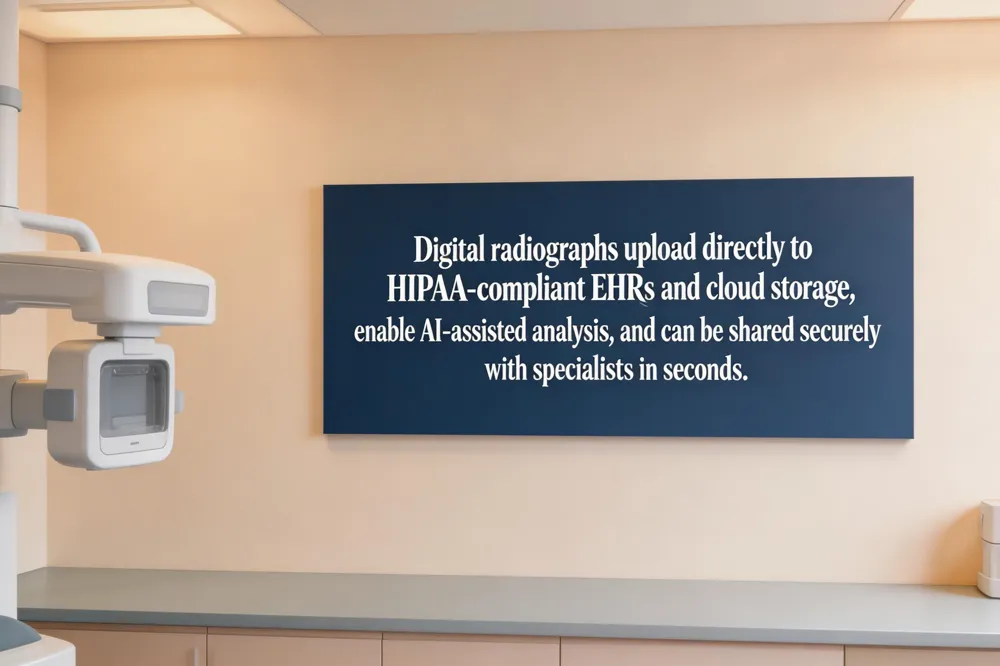 [Digital X‑rays] are now a cornerstone of modern dental practice, seamlessly linking imaging to electronic health records (EHR) and cloud storage. Once captured, the high‑resolution image is uploaded to a secure, HIPAA‑compliant server where it can be accessed instantly by the dentist, the patient, and any authorized specialist. This electronic workflow eliminates film, reduces paperwork, and speeds up treatment planning.