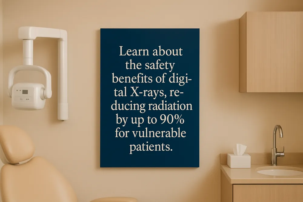 Digital X-rays use advanced sensors that reduce radiation exposure by 90% compared to traditional film X-rays. This dramatically lowers the potential risks associated with radiation, making digital imaging much safer for patients.